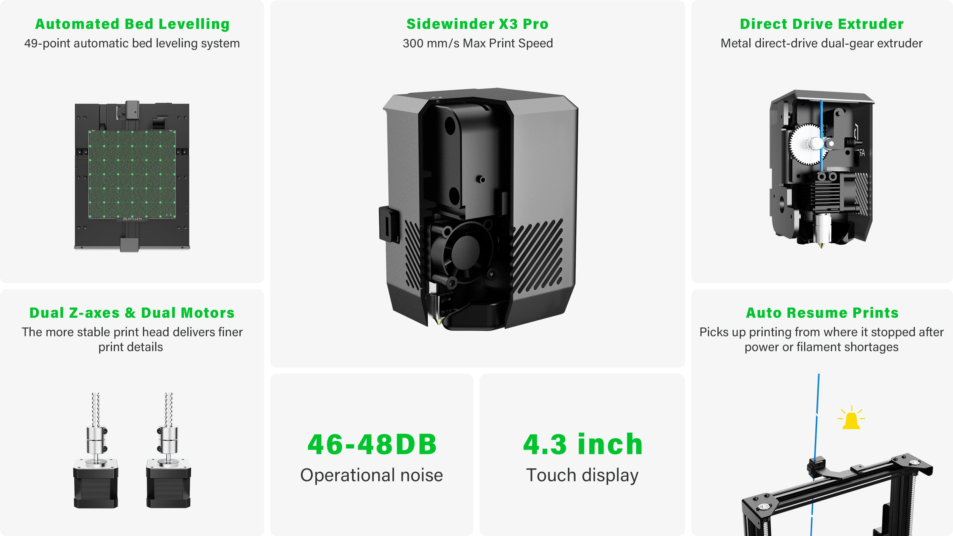 • Z-axis dual lead screw + dual motor